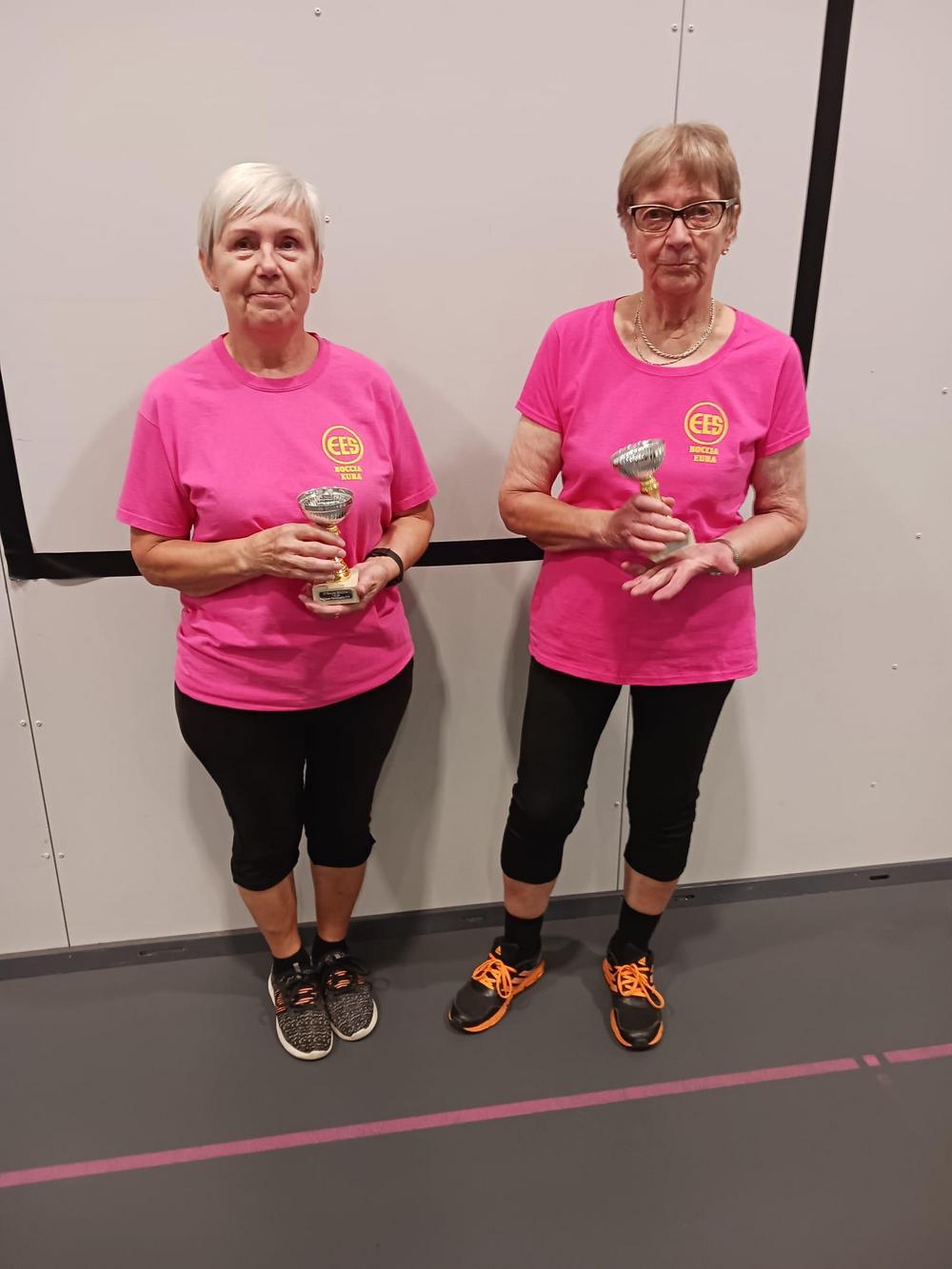 Aila Levo ja Riitta Kulmala toivat Raumalla 7.9.2024 pelatuista neljänsistä Raum Boccia -kisoista naisten sarjan komeat hopeapystit. Onnittelut naisille!
