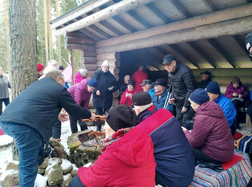 .Vietimme aurinkoista Eläkkeensaajien päivää 18.2.2025 Lallin Poikien metsästysmajalla. Laavulla paistui makoisat nuotiomakkarat ja majan lämmössä nautimme hyvät iltapäiväkahvit piirakan kera. Jäsenistöä oli paikalla 43 ja iltapäivähetken täytti iloinen puheensorina.