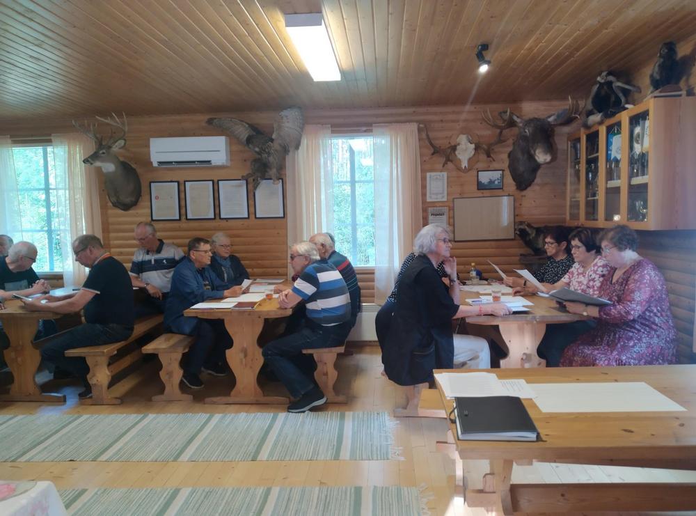 Ohjelmaryhmä aloitti syyskauden harjoitukset kokoontumalla Kiukaisten Metsästäjäin majalle. Katsottiin Joukon taltioima video kevään kutsujen ohjelmaosuudesta ja Sirpan ehdotuksen pohjalta ideoitiin lokakuussa olevien kutsujen ohjelmaa. Hannun ja Heikin säestyksellä availtiin lauluääniä ja illan päätteeksi popsittiin vielä iltapalaa.