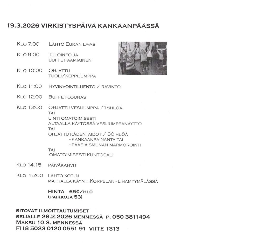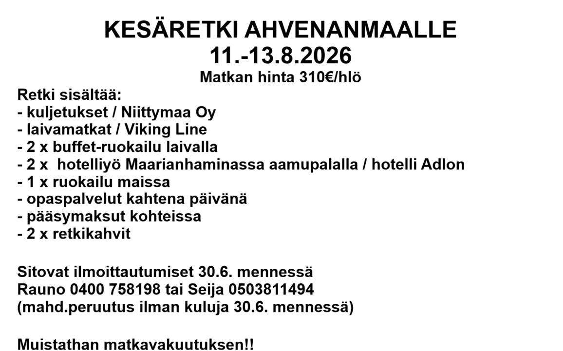 Sitovat ilmoittautumiset 10.4. mennessä Liisalle p. 044 2923447