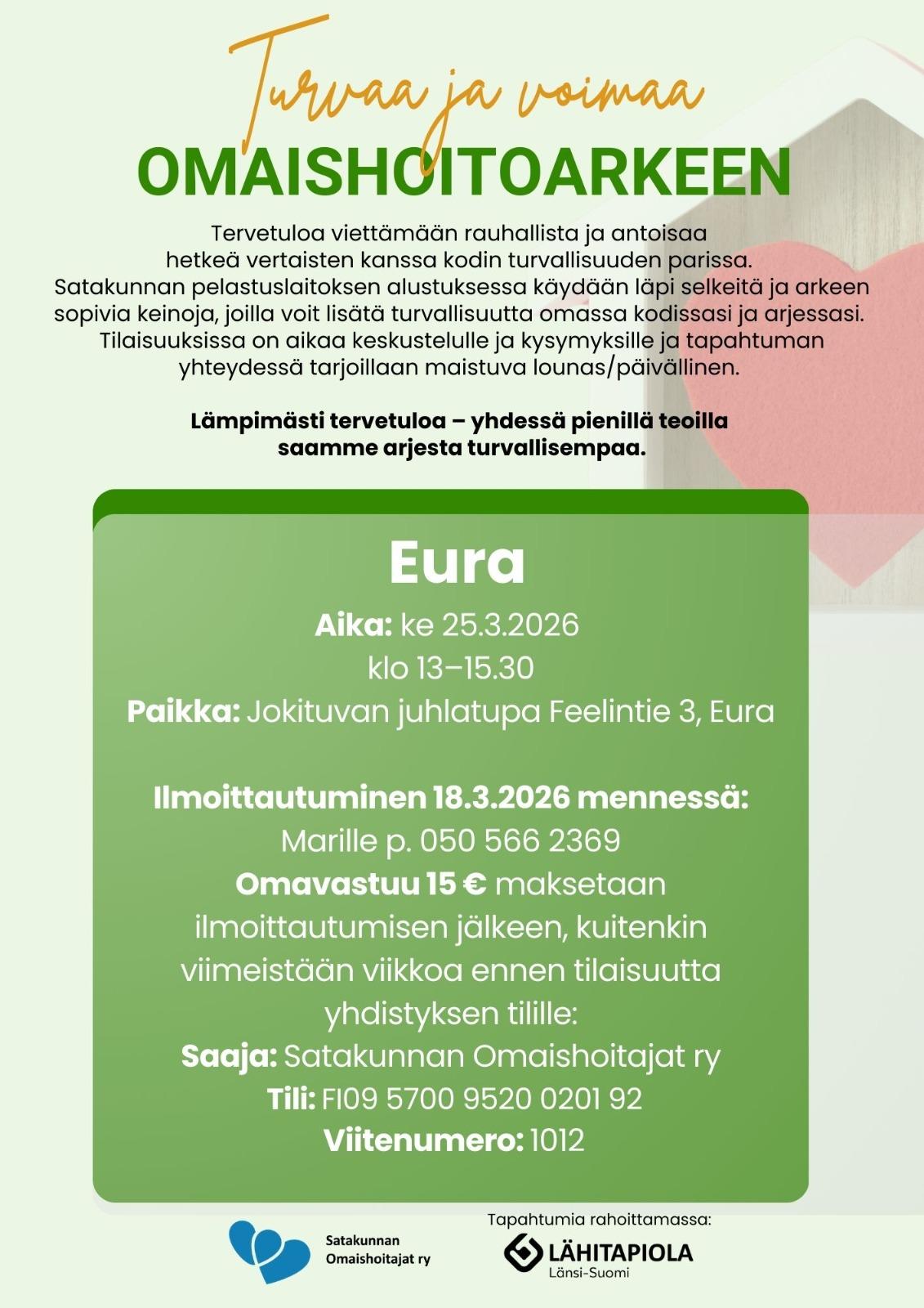 ILOINEN TALVIPÄIVÄ KODALLA Ti 3.3.2026 klo 13 - 16 / Harolantie 309, Kiukainen Mennään porukalla viettämään mukavaa talvipäivää Kiukaisten Metsästäjäin kodalle. Kota on iso, jonne mahtuu reilusti…